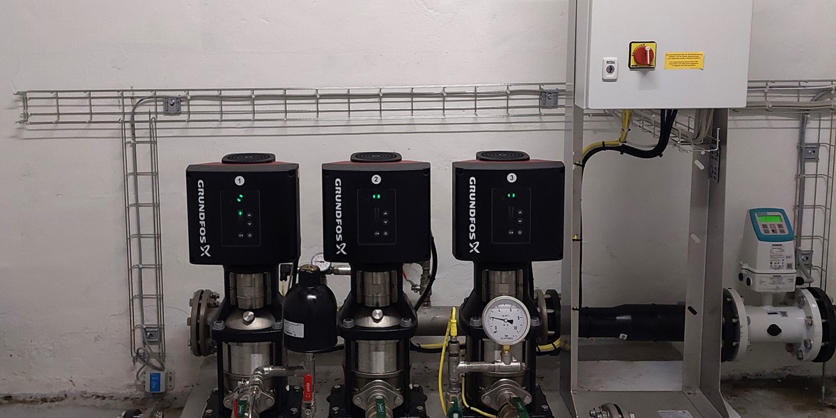 Vi har netop afsluttet opgaven med at installere en ny trykforøger, der kan øge trykket på vandet fra Sostrup Vandværk.